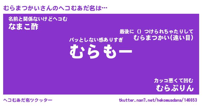 | 男性向けラノベタイトル風あだ名 | 『むらまつかいの憂鬱』 |