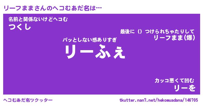 | ファンタジー風あだ名 | 『リーフェル』『エターナルリーフママー』 |