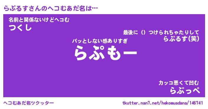| ポケモン風あだ名 | 『ラプチュウ』『ラプルダネ』 |