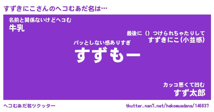 | ファンタジー風あだ名 | 『スズフェル』『エターナルスズキニコー』 |