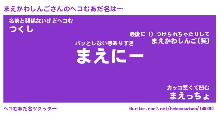 | 恥ずかしいあだ名 | 『プリティーまえかわしんご』『まえちん』 |