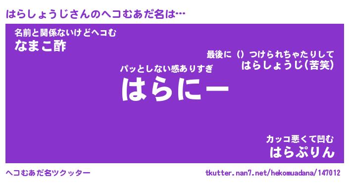 | 恥ずかしいあだ名 | 『プリティーはらしょうじ』『はらっちょ』 |