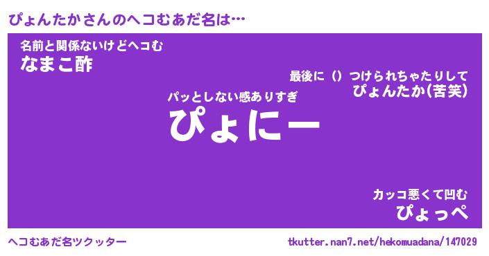 | ポケモン風あだ名 | 『ピョチュウ』『ピョンダネ』 |