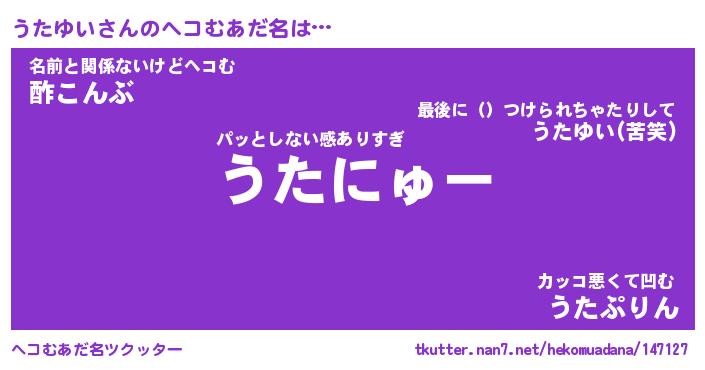 | 意味不明あだ名 | 『ペロリンうたゆい』『永久保存うたゆい』 |