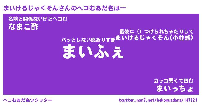 | 欧米人風あだ名 | 『マイケルまいけるじゃくそん』 |