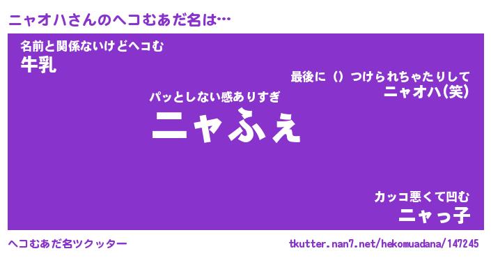 | ファンタジー風あだ名 | 『ニャフェル』『エターナルニャオハー』 |