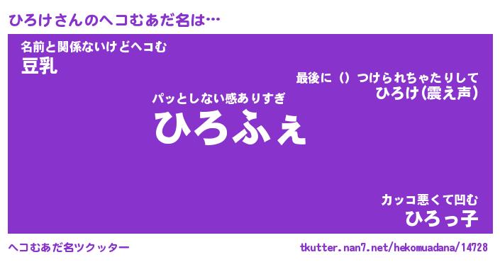 | 意味不明あだ名 | 『ペロリンひろけ』『ひろけフォーエバー』 |