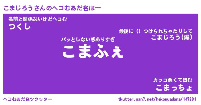 | ファンタジー風あだ名 | 『コマフェル』『エターナルコマジロウー』 |