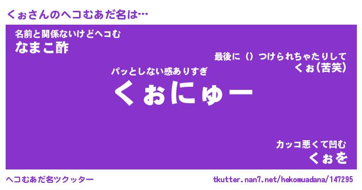 | 2回繰り返すあだ名 | 『くぉくぉ』『くくぉぉ』『けらけら』 |