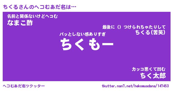 | 2回繰り返すあだ名 | 『ちくちく』『ちちくく』『ぬるぬる』 |