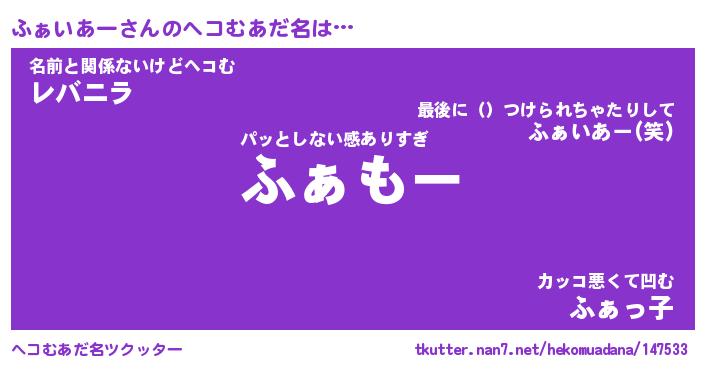 | 2回繰り返すあだ名 | 『ふぁふぁ』『ふふぁぁ』『ぴんぴん』 |
