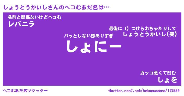 | 男性向けラノベタイトル風あだ名 | 『しょうとうかいしの憂鬱』 |
