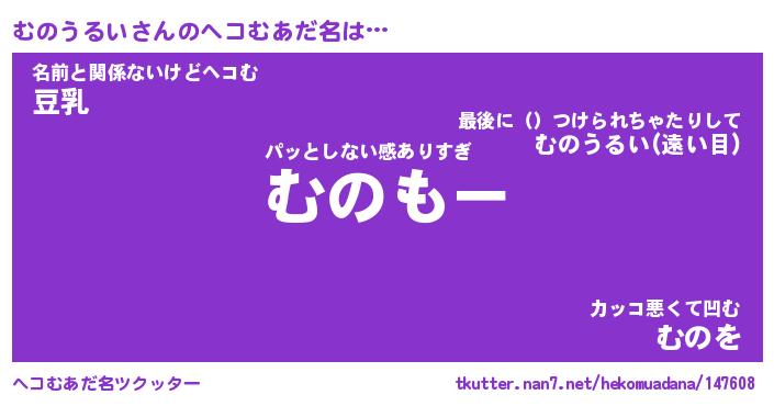 | ファンタジー風あだ名 | 『ムノフェル』『エターナルムノウルイー』 |