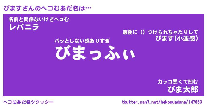| ヒーロー風カッコイイあだ名 | 『スーパービマス』『ウルトラびますマン』 |