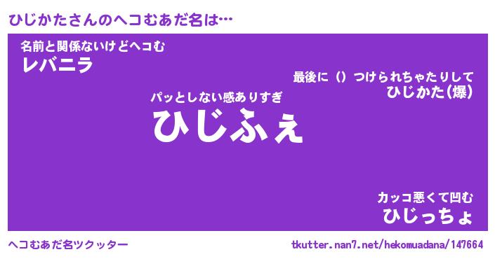 | ファンタジー風あだ名 | 『ヒジフェル』『エターナルヒジカター』 |