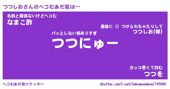 | ファンタジー風あだ名 | 『ツツフェル』『エターナルツツシオー』 |