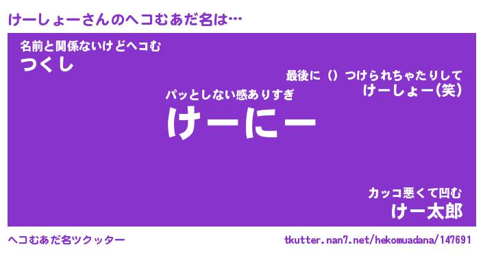 | 自動車の名前っぽいあだ名 | 『ケーティマ』『ケクア』『デミケ』 |