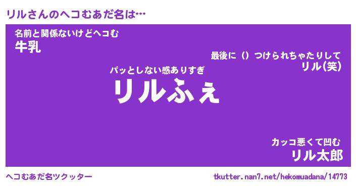 | ポケモン風あだ名 | 『リルチュウ』『リルダネ』『ヒリル』 |