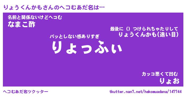 | 2回繰り返すあだ名 | 『りょりょ』『りりょょ』『くたくた』 |