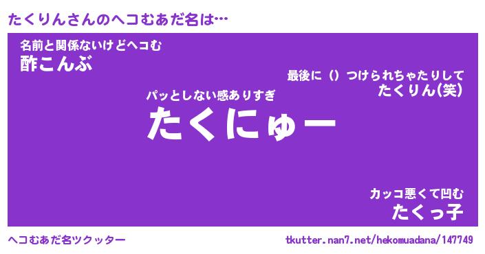 | 2回繰り返すあだ名 | 『たくたく』『たたくく』『ねばねば』 |