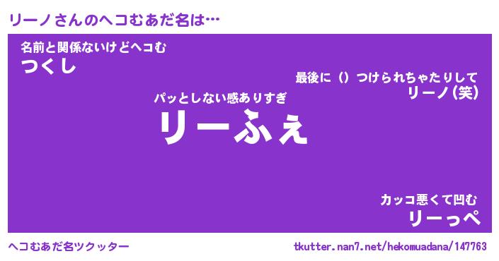 | ポケモン風あだ名 | 『リーチュウ』『リーノダネ』 |