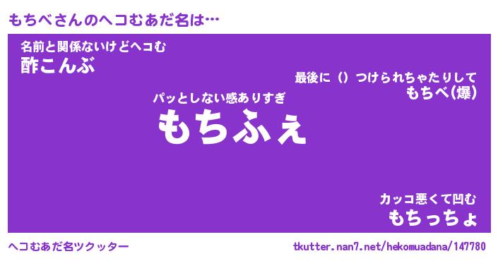 | 意味不明あだ名 | 『ペロリンもちべ』『もちべフォーエバー』 |