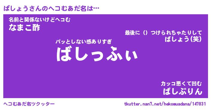 | ファンタジー風あだ名 | 『バシフェル』『エターナルバショウー』 |