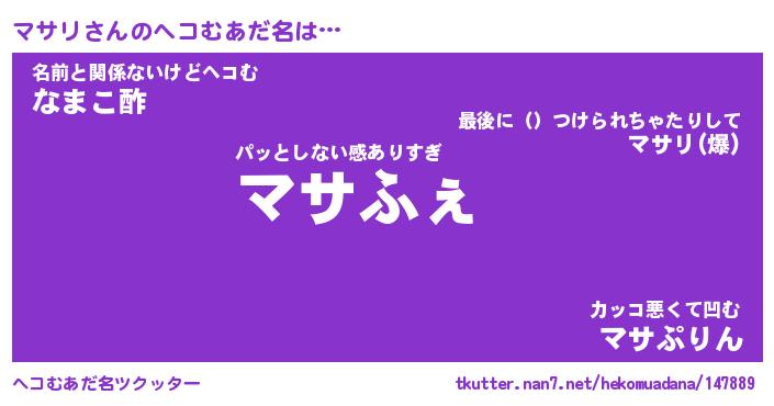 | ヒーロー風カッコイイあだ名 | 『スーパーマサリ』『ウルトラマサリマン』 |