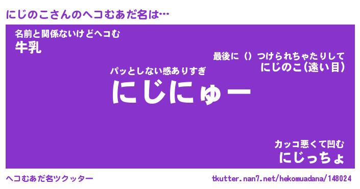 | 2回繰り返すあだ名 | 『にじにじ』『ににじじ』『ぬるぬる』 |