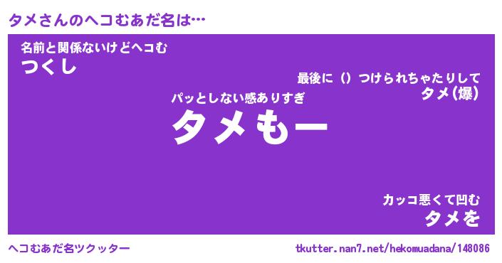 | ポケモン風あだ名 | 『タメチュウ』『タメダネ』『ヒタメ』 |