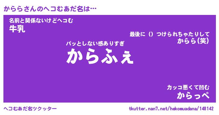 | 意味不明あだ名 | 『ペロリンからら』『かららフォーエバー』 |
