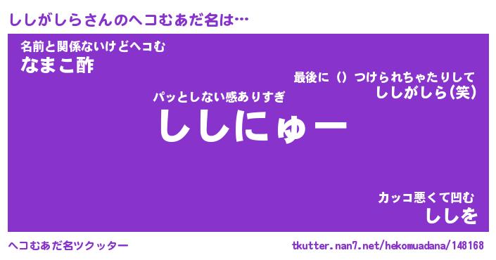 | 意味不明あだ名 | 『ペロリンししがしら』 |