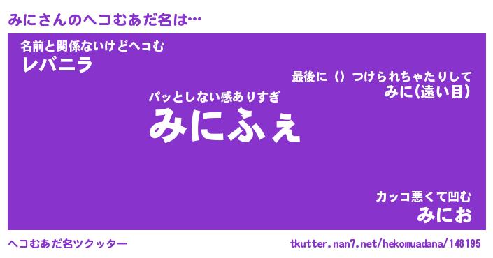 | ファンタジー風あだ名 | 『ミニフェル』『エターナルミニー』 |