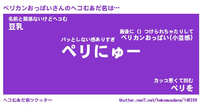 | 男性向けラノベタイトル風あだ名 | 『ペリカンおっぱいの憂鬱』 |