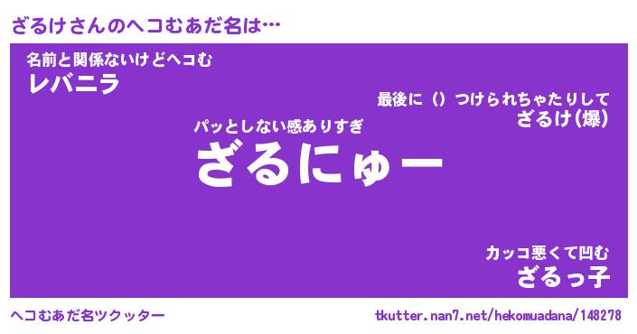 | 2回繰り返すあだ名 | 『ざるざる』『ざざるる』『なあなあ』 |
