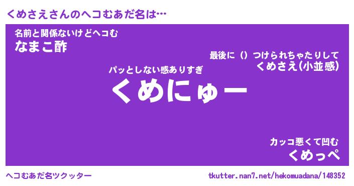 | 意味不明あだ名 | 『ペロリンくめさえ』『永久保存くめさえ』 |