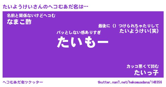 | 恥ずかしいあだ名 | 『プリティーたいようけい』『たいっちょ』 |