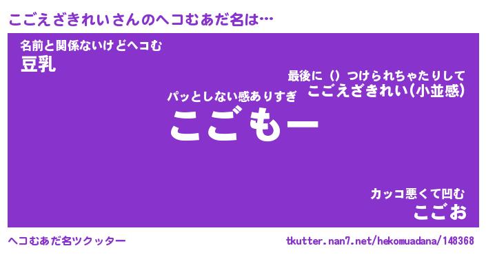 | ポケモン風あだ名 | 『コゴチュウ』『コゴエダネ』 |