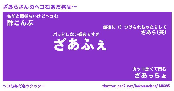 | 胡散臭い通販商品みたいなあだ名 | 『億万長者になれる水晶球…その名も「ざあら」』 |