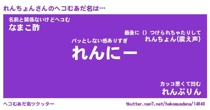 | 意味不明あだ名 | 『ペロリンれんちょん』 |
