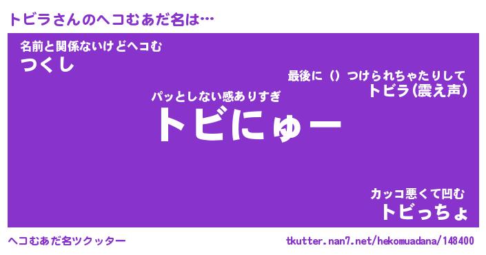 | ヒーロー風カッコイイあだ名 | 『スーパートビラ』『ウルトラトビラマン』 |