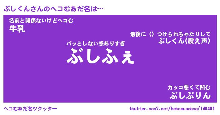 | 意味不明あだ名 | 『ペロリンぶしくん』『永久保存ぶしくん』 |