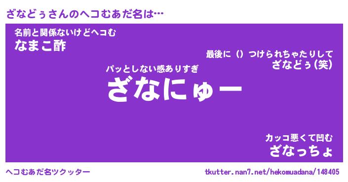| 意味不明あだ名 | 『ペロリンざなどぅ』『永久保存ざなどぅ』 |