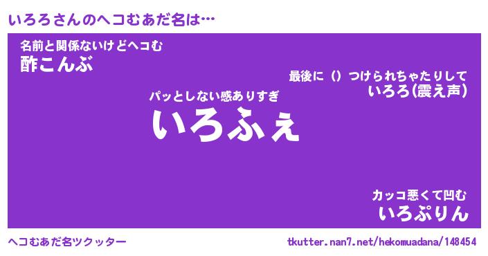 | 意味不明あだ名 | 『ペロリンいろろ』『いろろフォーエバー』 |