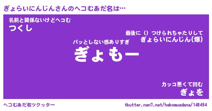 | 欧米人風あだ名 | 『マイケルぎょらいにんじん』 |