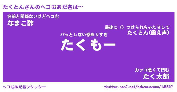 | 男性向けラノベタイトル風あだ名 | 『たくとんの憂鬱』 |