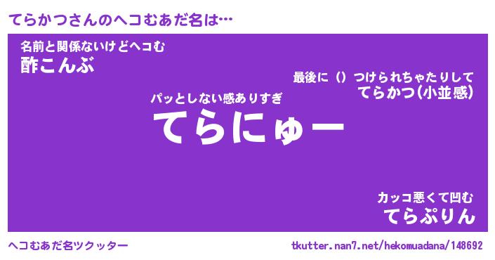 | 意味不明あだ名 | 『ペロリンてらかつ』『永久保存てらかつ』 |