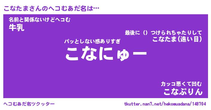 | 自動車の名前っぽいあだ名 | 『コナティマ』『コクア』『コント』 |