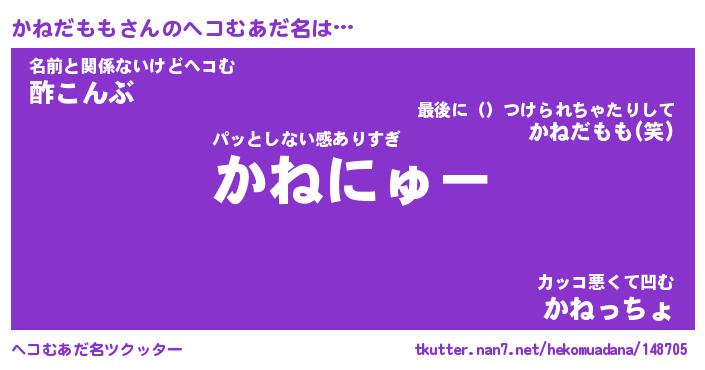 | ファンタジー風あだ名 | 『カネフェル』『エターナルカネダモモー』 |