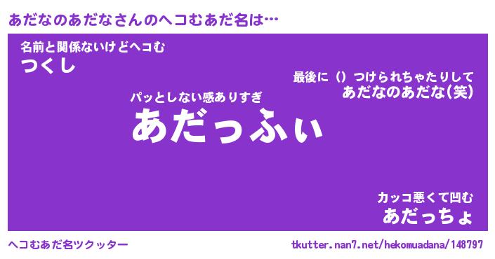 | 2回繰り返すあだ名 | 『あだあだ』『ああだだ』『なあなあ』 |